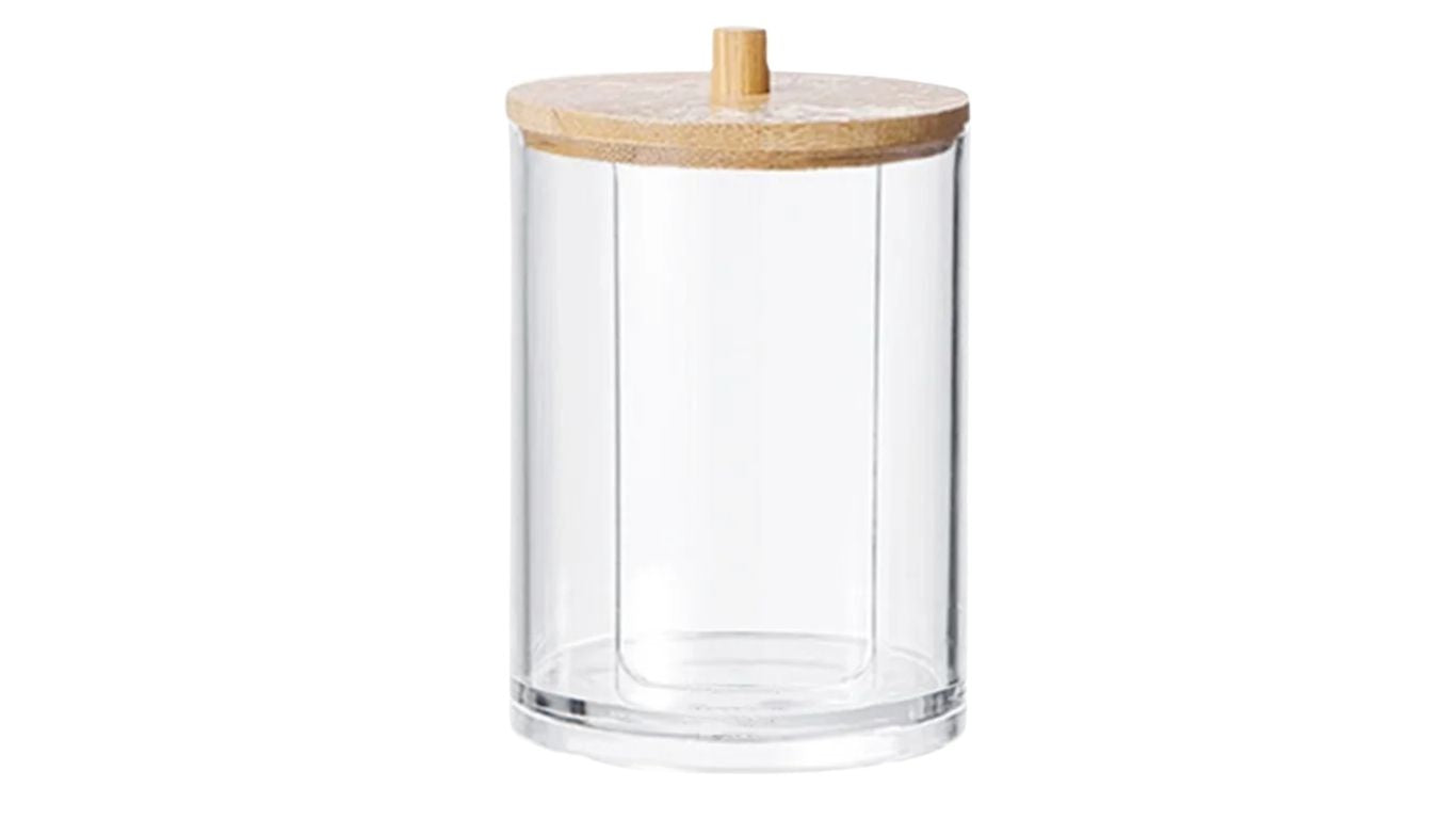 Perspex Round Cotton Pad Holder with Bamboo Lid (small)