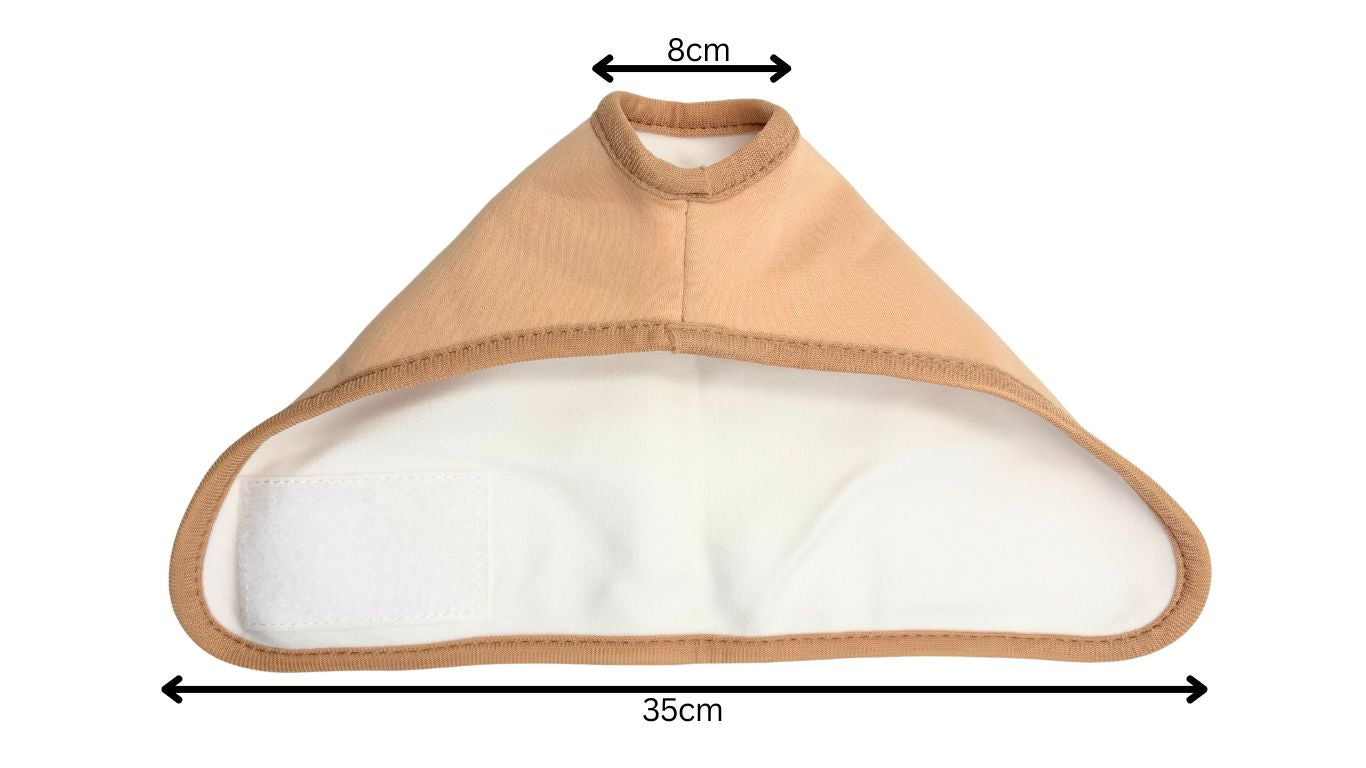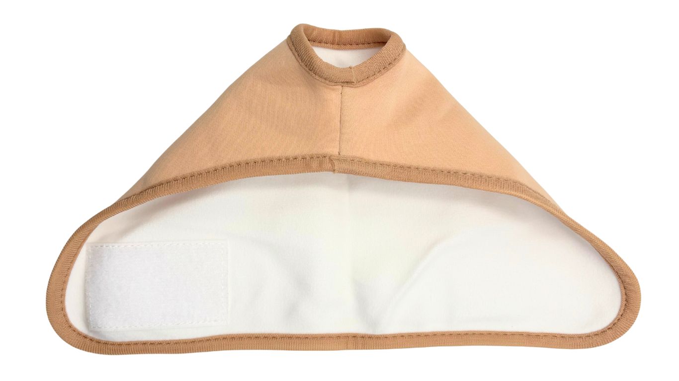 Fold the pack in half to evenly spread the oil. Place the pack, oil side down, over the thyroid, avoiding contact with any clothing. Tie the straps to keep the pack in place.