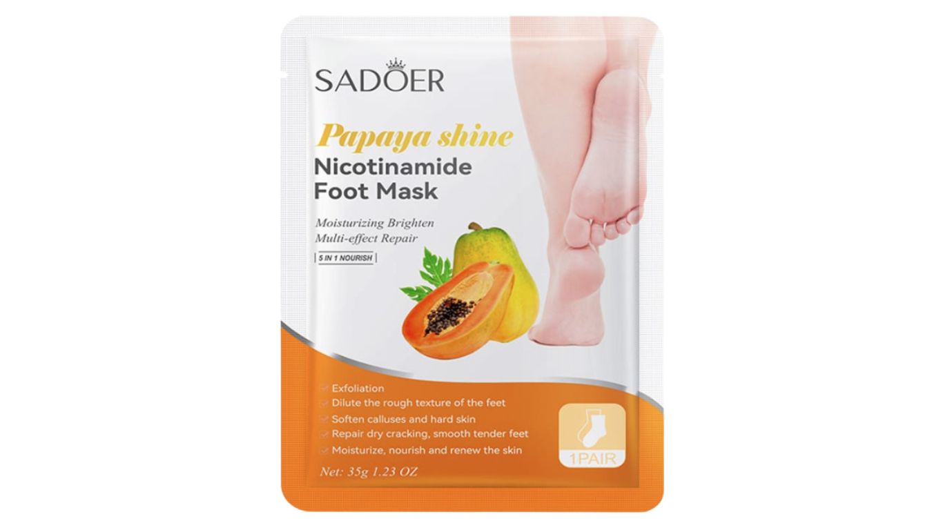 Papaya Shine: Revitalize and brighten your feet with our Papaya & Nicotinamide Brightening & Exfoliating Foot Mask. This indulgent treatment features a powerful blend of papaya extract and nicotinamide to exfoliate and illuminate, while Centella Asiatica and Sodium Hyaluronate provide soothing hydration. Experience softer, smoother, and more radiant feet with this luxurious at-home spa treatment.