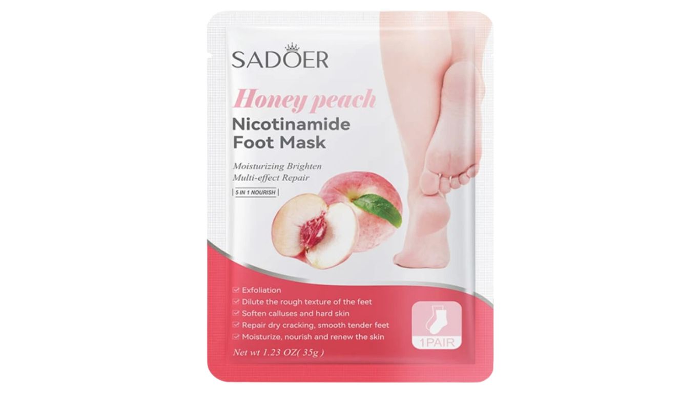 Honey Peach: Intensely moisturize and nourish your feet with this mask. Infused with honey and peach extracts, this luxurious treatment deeply hydrates and softens rough, dry skin. Experience the indulgent benefits of this foot mask and achieve soft, supple feet.